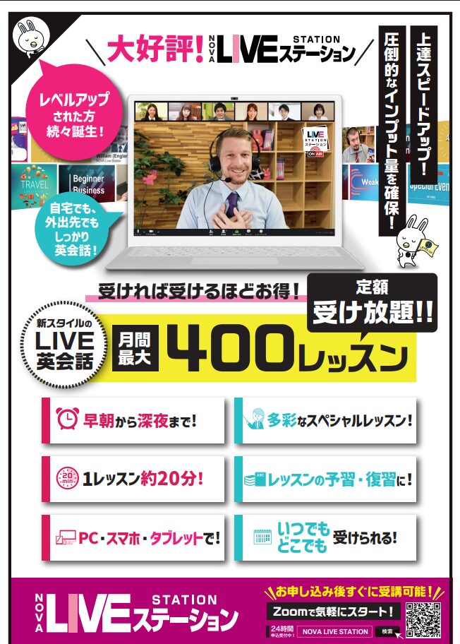 NOVAの全国展開&いつでもどこでも受講できるシステムをフル活用ですね。