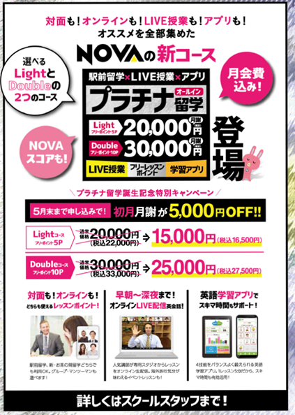 LIVE STATIONや学習アプリ、NOVAスコア1回分の受験と月会費