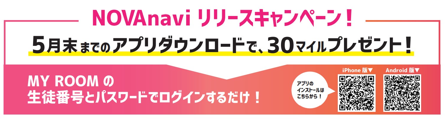 皆様、4月に新登場したNOVA新アプリ『NOVAnavi』