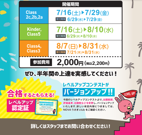 今年もNOVAバイリンガルKIDSの夏のレベルアップコンテストの時期がやって参りました!
