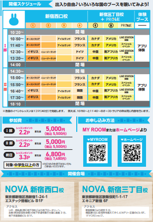 NOVAマイルームからお申込みができますので、8月に東京・大阪に行かれる方は是非、参加してみてください!