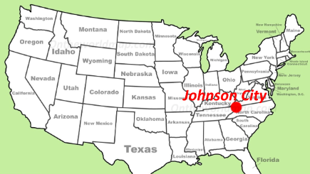 マイケル先生の出身地は、テネシー州にあるジョンソンシティという場所です!下の図の赤い印がついてる部分がマイケル先生の生まれ故郷です!ジョンソンシティは、テネシー州の東部に位置しており、小さい町ではありますが、とても穏やかな街で、ハイキングエリアとしても知られているそうですよ!