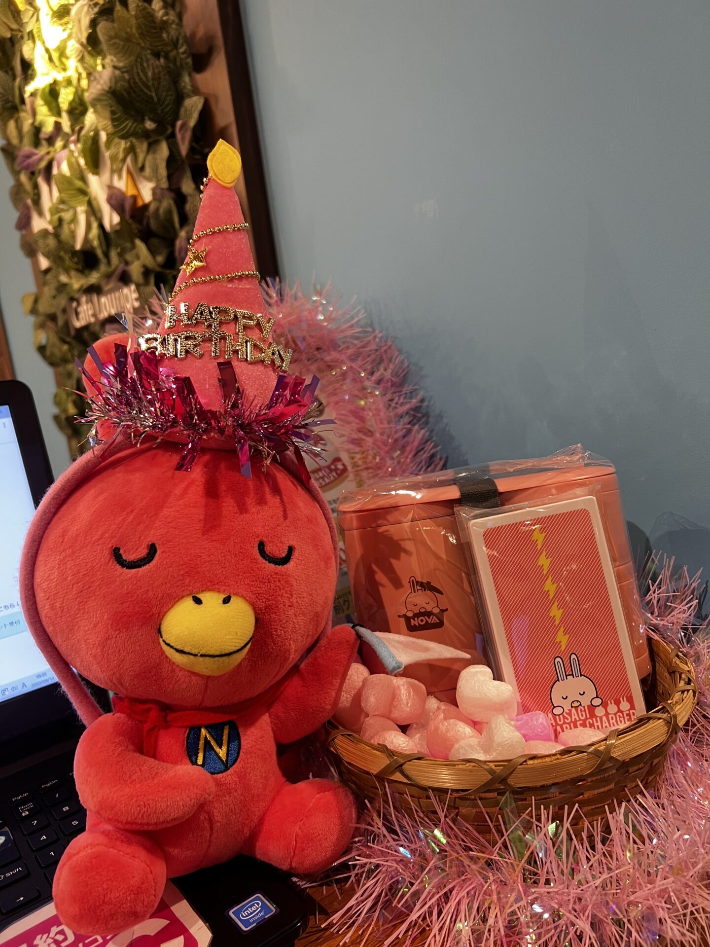 NOVAうさぎカラーのピンクをたくさん使ってお祝いムードにしていました💖