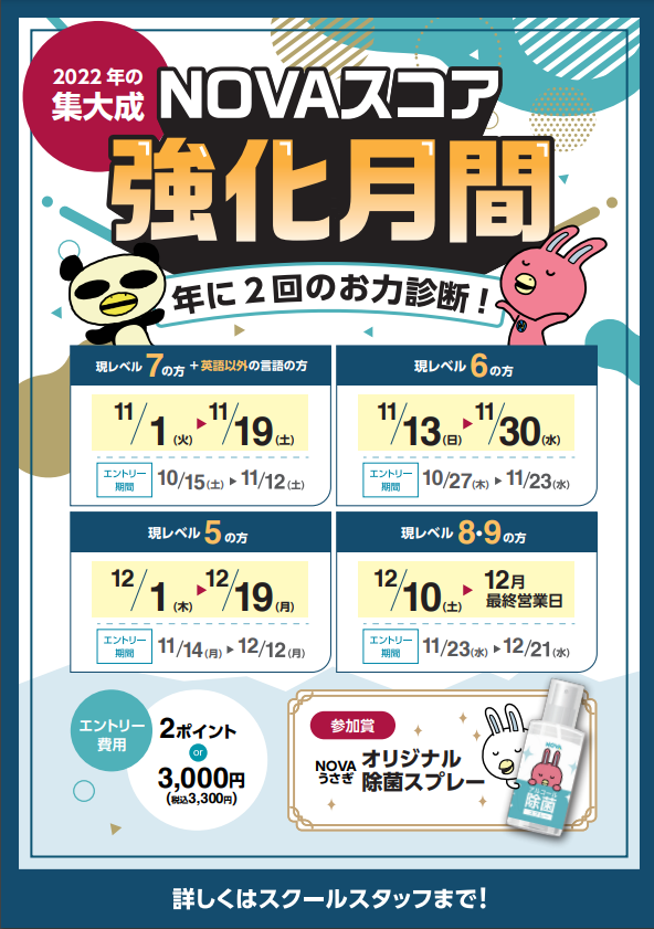 今年も年末のNOVAスコア強化月間がやってきました!!!