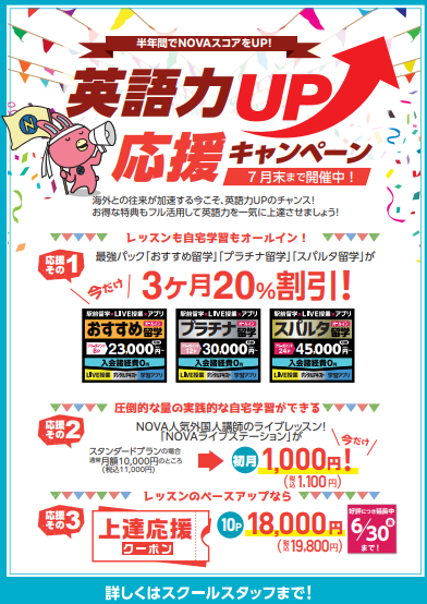 ネイティブ講師の楽しいレッスンがこの価格で受けられるのはNOVAだけです☆彡