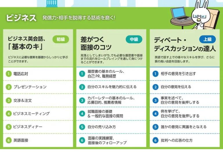 ビジネスシーンに必要な会話やスキルを基礎から学ぶことができます✨