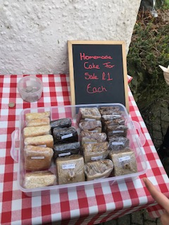 道端に手作りのケーキ😊🍰 左上に置いてあるクリアの入れ物に お金を入れて、好きなものを選び、 取っていくスタイルです。 1個€1(1ユーロ)で日本円で、 大体140円くらいになります(現在のレート)。 友達2人が購入していましたが、 美味しかったとのこと。 ただ結構甘く割と量も多いので 2人で半分が一番いいかも!