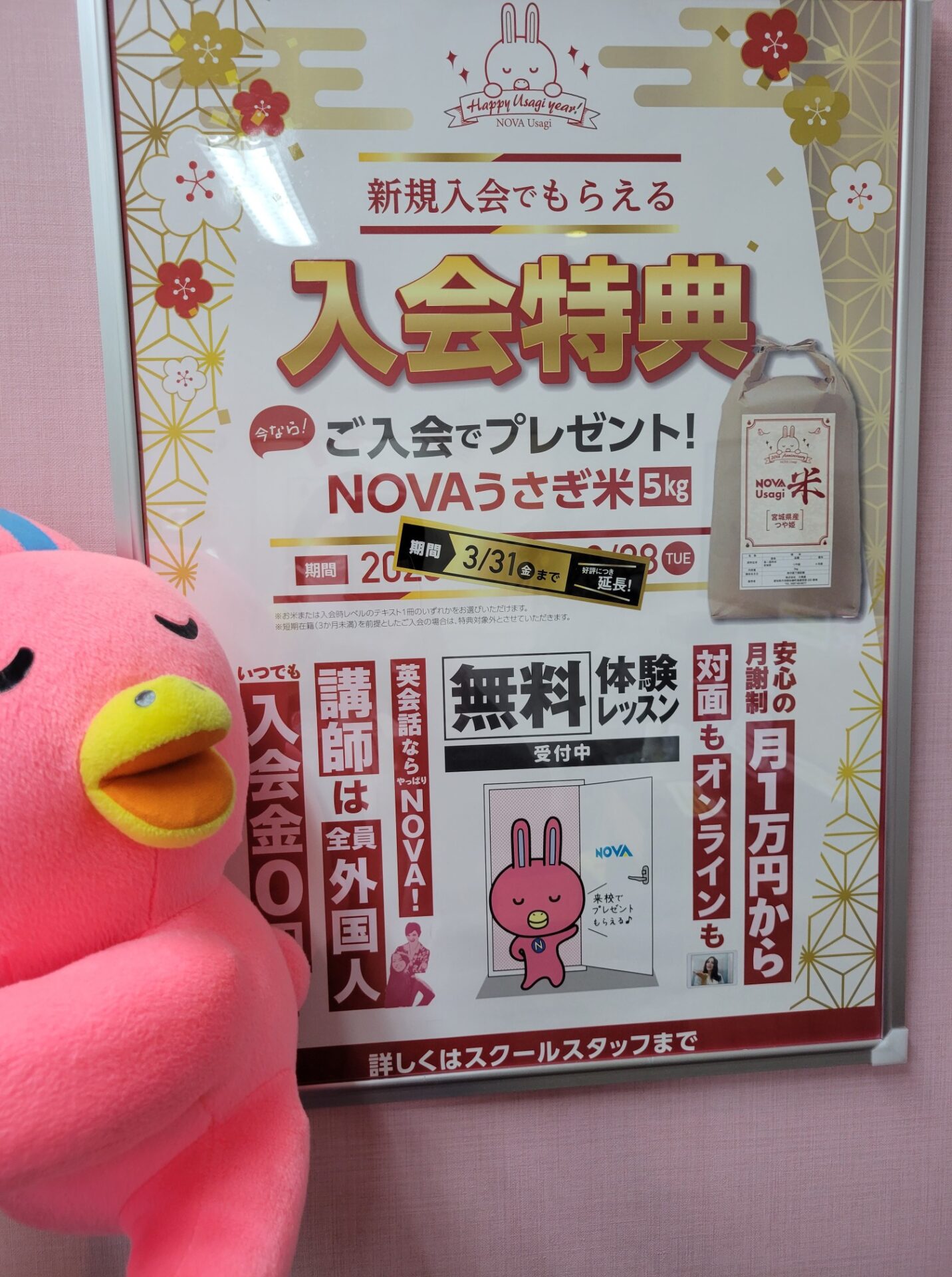 さらにさらにNOVAで頑張るぞーとご入会を決めて下さった方へはNOVAうさぎ米5Kg or NOVAうさぎグッズ \さらに/ 入会時レベルの英語テキスト1冊プレゼント🐰💗✨☝☝がございます🙆✨
