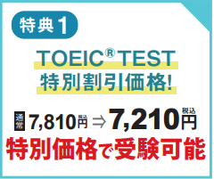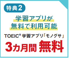特典①TOEICテストの割引! 特典②学習アプリが3か月間無料で使い放題!