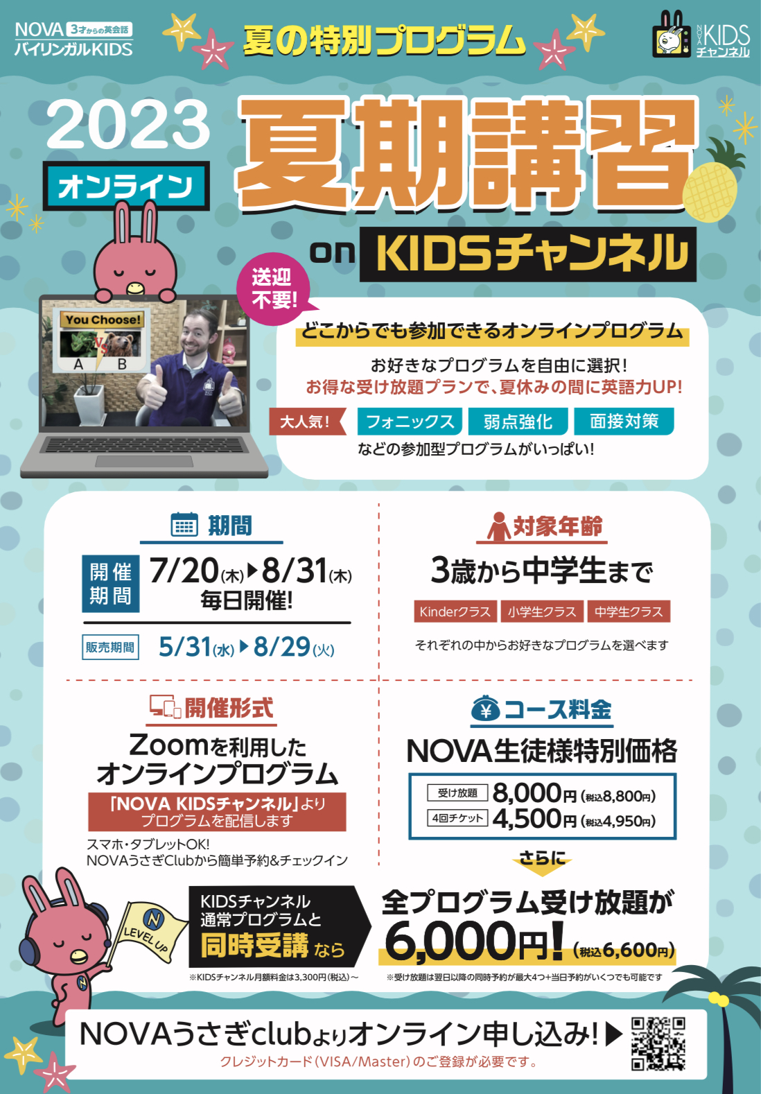 申込方法:NOVAうさぎclubからオンライン申込