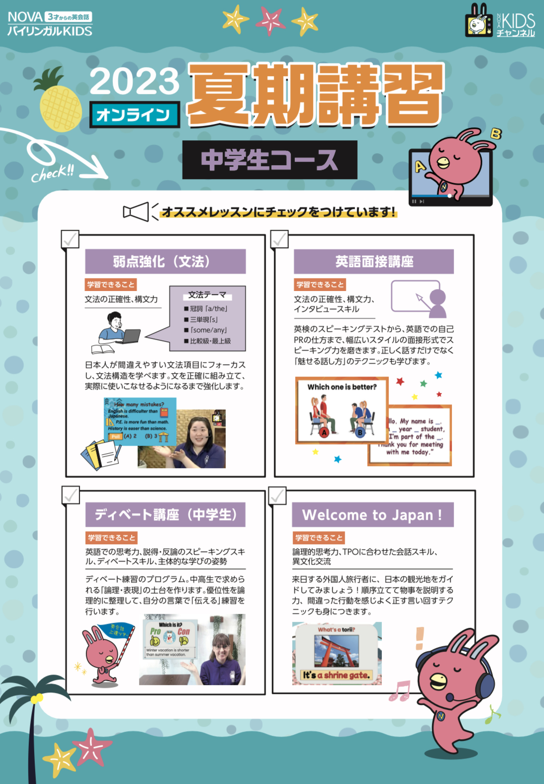 非生徒様はNOVA バイリンガル KIDS内の夏期講習バナーボタンより