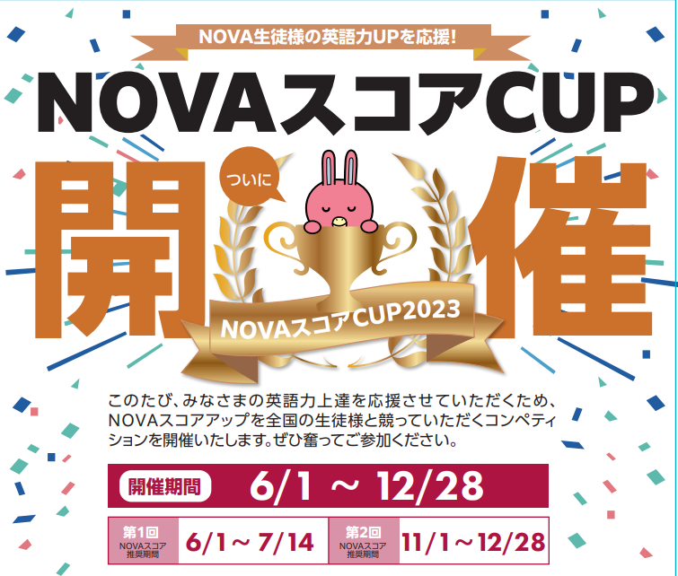 水際対策も撤廃となり、海外渡航のチャンスも増える中、この半年で一気にスコアアップを目指して頂きたい!という思いから、「NOVA スコア CUP2023」を開催いたします!