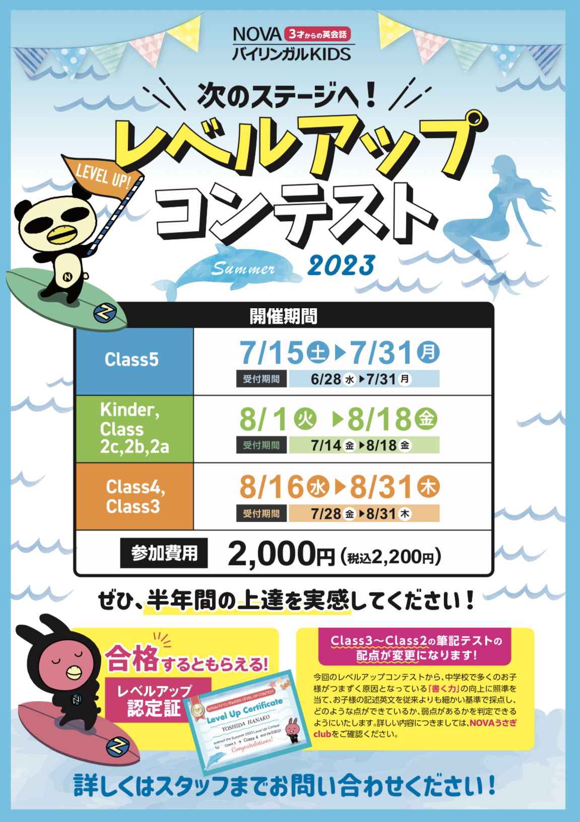 KIDSのクラス分けは、1年に2回、夏と冬に開催される