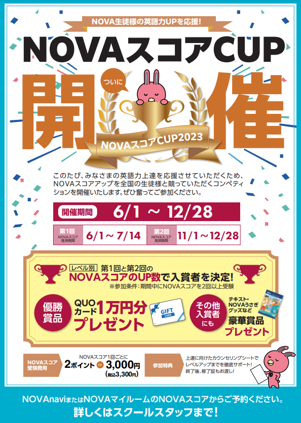 英会話のNOVA福井エルパ校です🐰