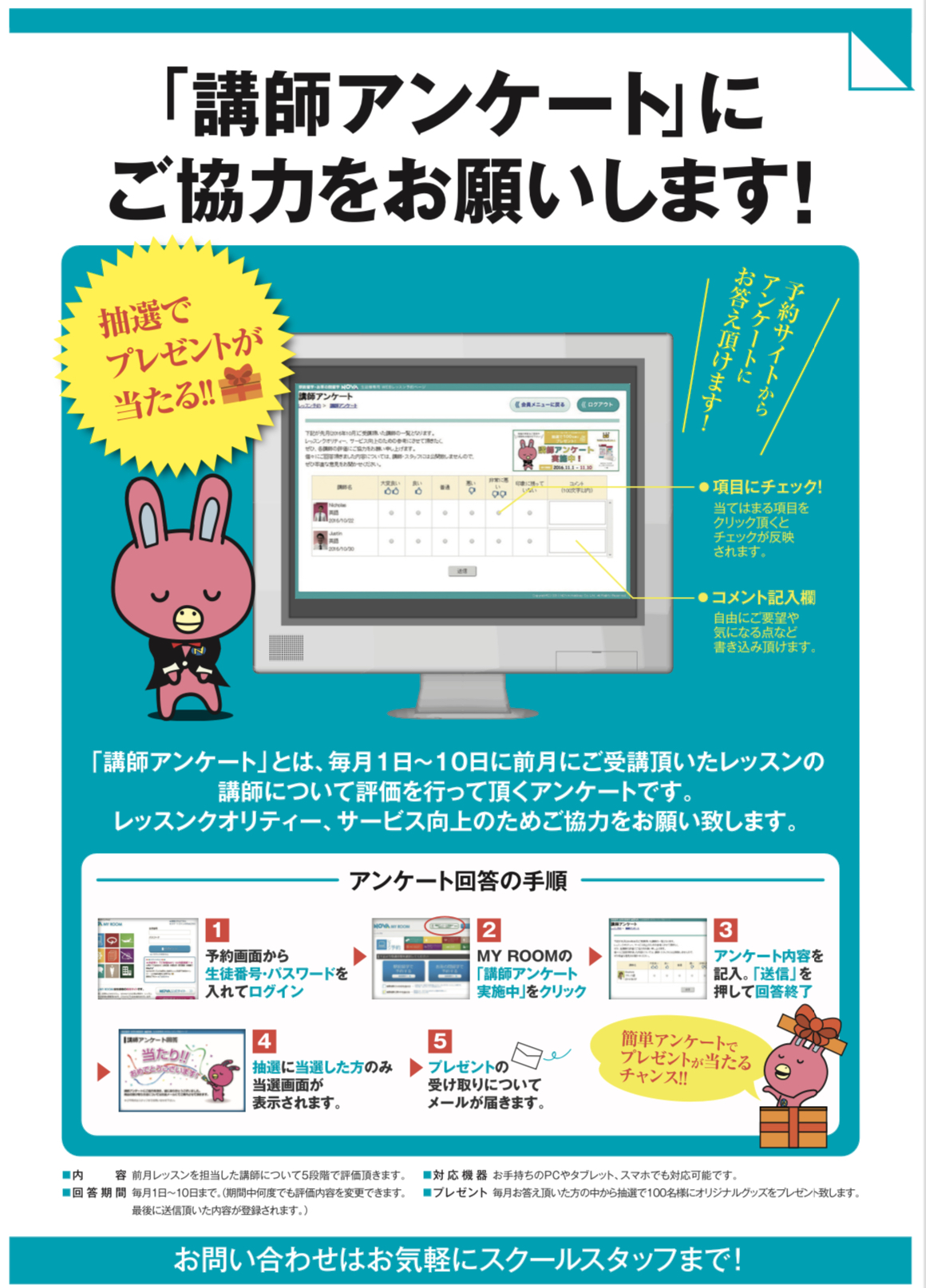 10月1日より、9月度の講師アンケートがスタートいたします!