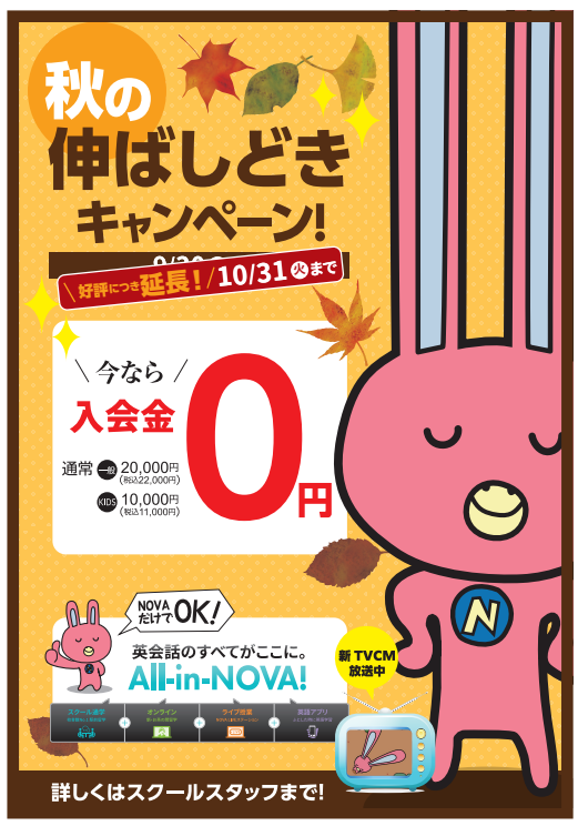 現在NOVAでは入会金無料キャンペーンを行っております!