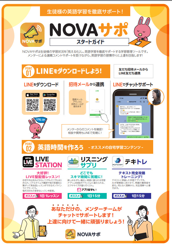 【NOVAサポ】といったアプリを使って頂いているかと思いますが、