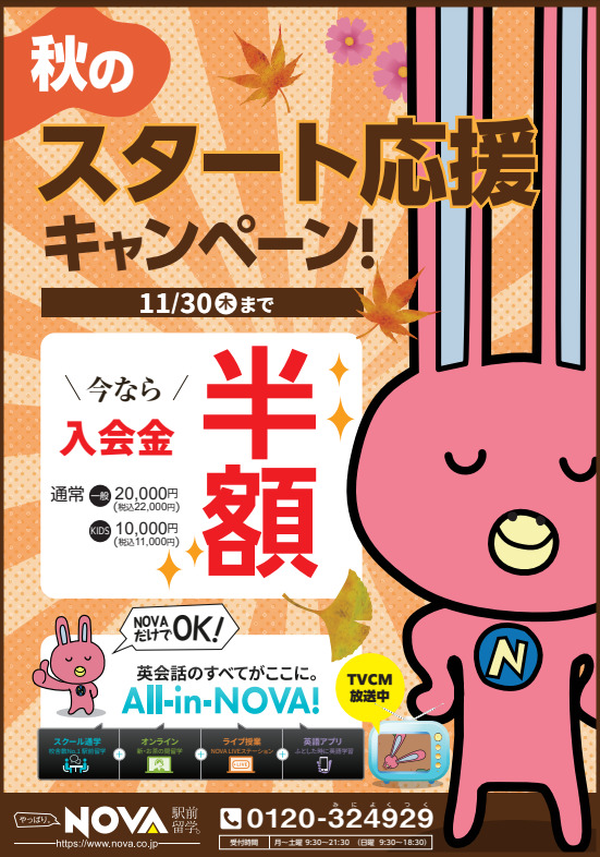 現在秋のスタート応援キャンペーンを実施中です。