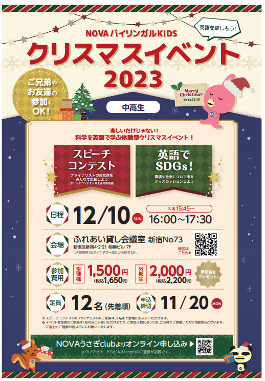 NOVAで開催予定のクリスマスイベントについてご紹介いたします!