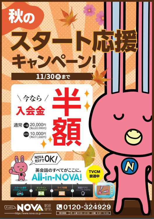 また英会話NOVA田無校では無料の体験レッスンも行っております。