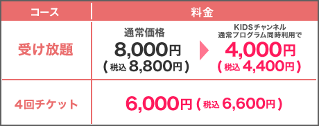 受け放題プランだと、1レッスン見逃してしまったり、突キャンセルしても、もう一度見直せるチャンスがあります!また、KIDSチャンネルと併用にお申込みいただくと、4回チケットよりもお安く冬期講習プログラムを受けることができちゃいます♪