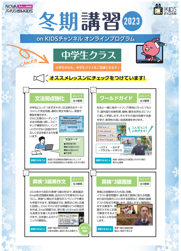 KIDS冬期講習は12月1日スタートです!⛄