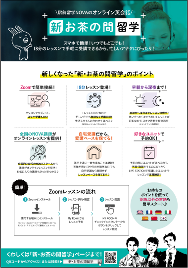 校舎が休みになる年末年始休業でもレッスン(ご自宅での受講のみ)を提供しているオンラインレッスン「新・お茶の間留学」について簡単に紹介します。