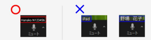 2:チェックイン後、ZOOMに接続できましたら、対面レッスンと同様に講師が質問に答えるように生徒を呼ぶことがあるため、お名前をローマ字表記に変更します。