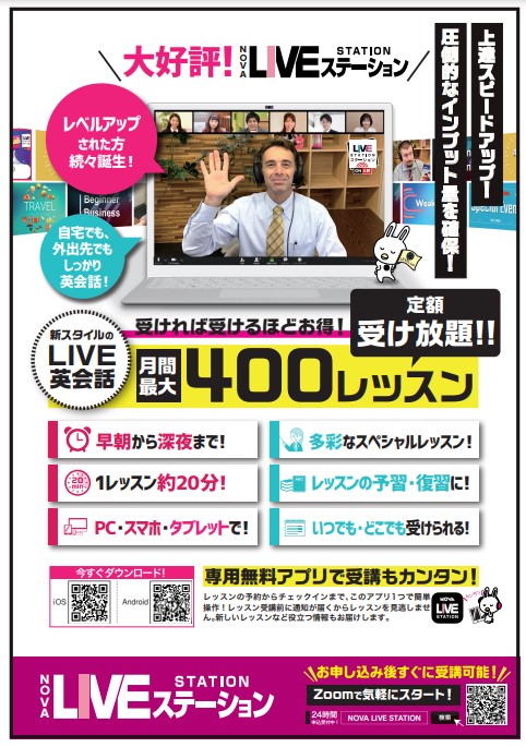 LIVE STATIONとお茶の間留学(オンライン)での受講に関しては28日までとなります。