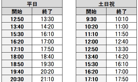 土曜日、祝日は9時半からご受講いただけますので、朝活にご利用ください!!