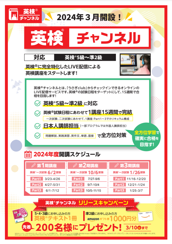 今までKIDSチャンネルで英検講座を配信しておりましたが、