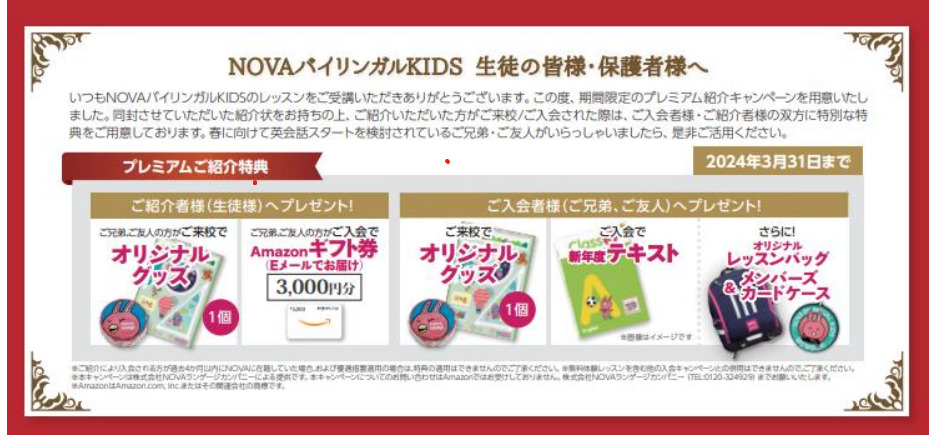NOVAをご紹介していただき、さらに、ご入会して頂きますと