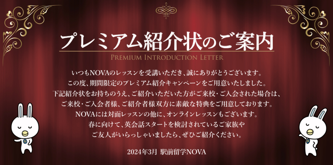 英会話スクール・英会話教室【NOVA千里中央校】大人のプレミアム紹介のお知らせ😌🌸