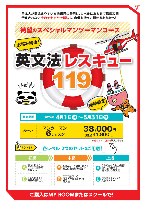 自分の伝えたいことが少しの違いでも、別の伝わり方をしてしまうと悔しいですよね。この春は英文法レスキューで正しい英語を使いこなせるように学んでみませんか?