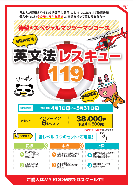 今なら、文法マスターができるスペシャルコースの