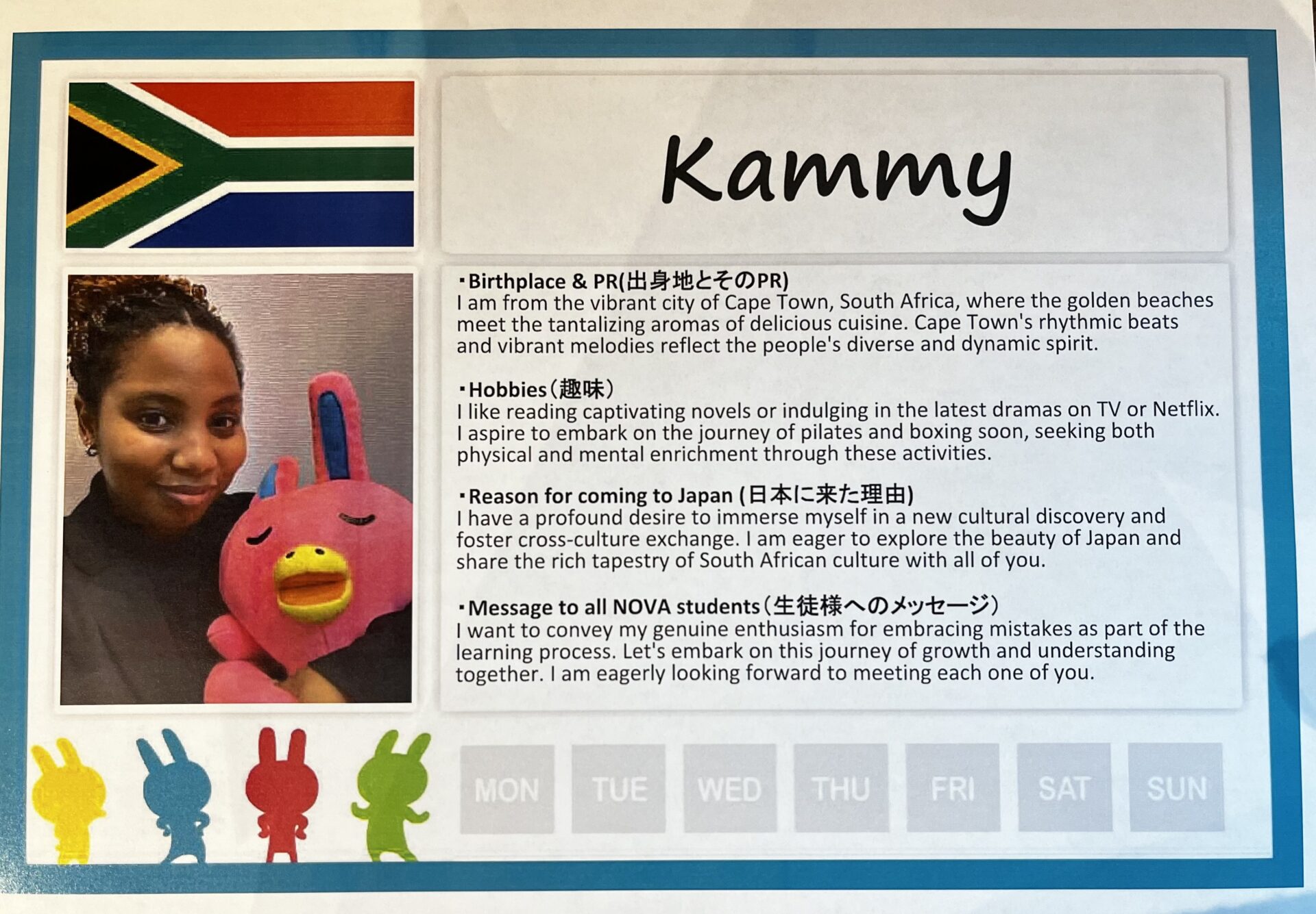 I have a profound desire to immerse myself in a new cultural discovery and foster cross-culture exchange. I am eager to explore the beauty of Japan and share the rich tanestry of South African culture with all of you.