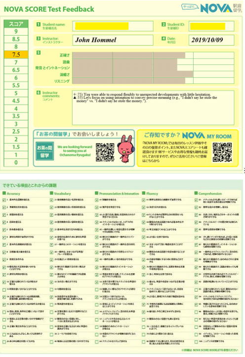 NOVAには「NOVAスコア」という、独自の実力診断テスト🌞があります!