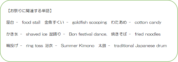 ということで!浦安校の先生にお祭りの場面で使える英会話を聞いてみました(^^♪