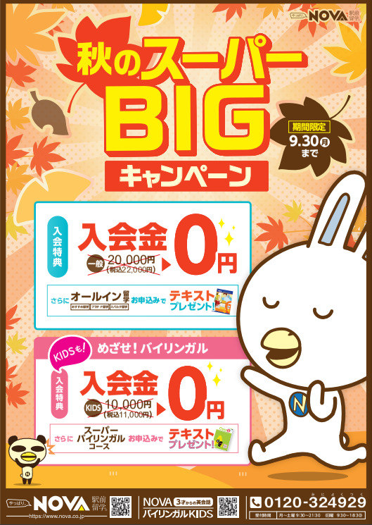 NOVAでは秋のスーパーBIGキャンペーンとして・・・
