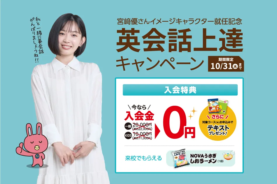 今期待の若手俳優の宮崎優さんがNOVAのイメージキャラクター就任を記念いたしまして、皆様もお手軽に英会話のスタート切り出せる大きなキャンペーンを実施させてただいております!!