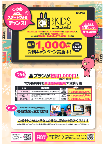 11月1日~12月28日の期間中にKIDSチャンネルにお申込みされた方はなんと、、