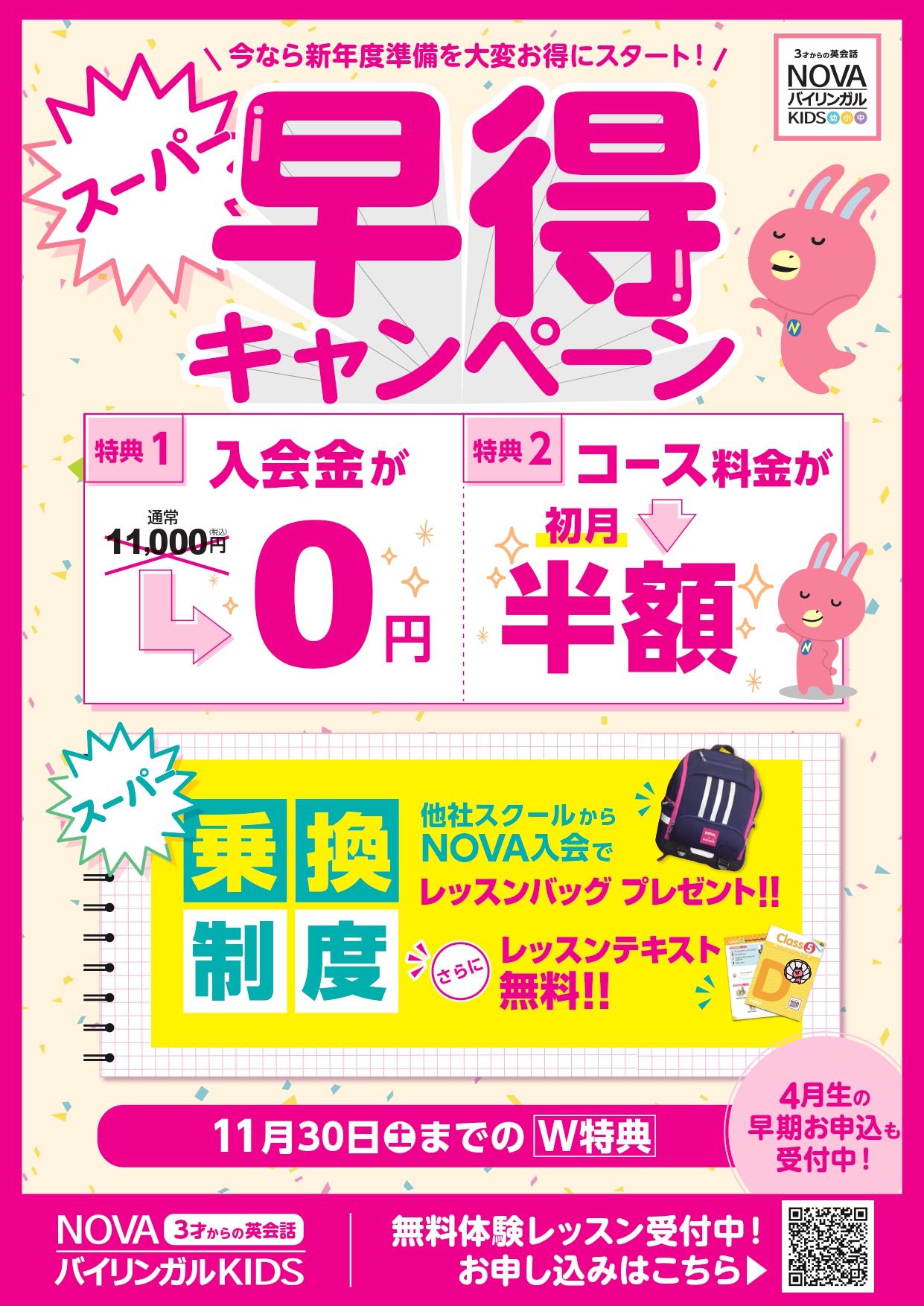 NOVAバイリンガルキッズ スーパー早得キャンペーン💨💨