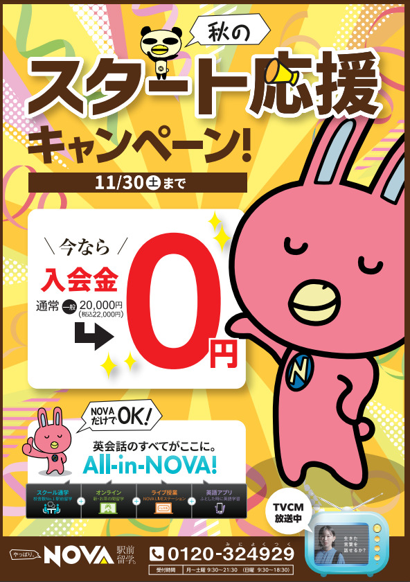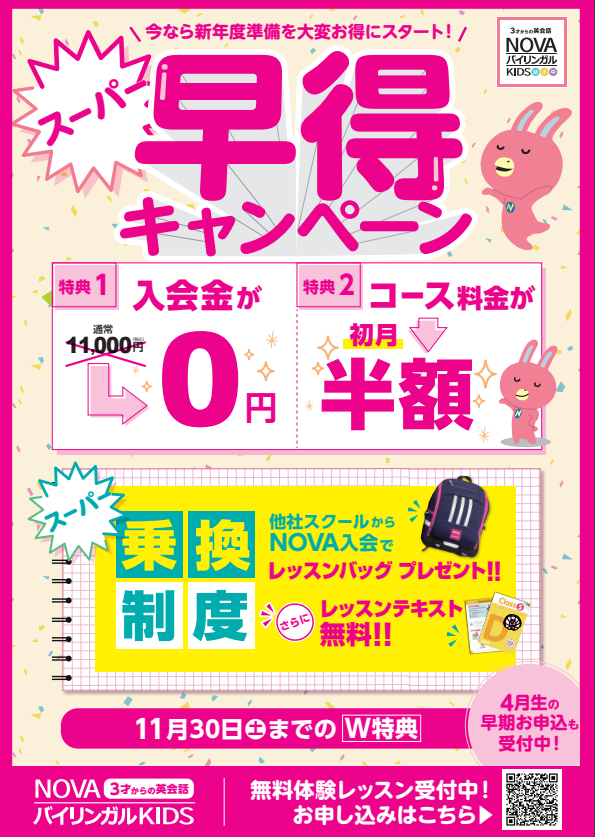 💡スーパー乗換制度:他社スクールからNOVAへ乗り換えて頂くと、
