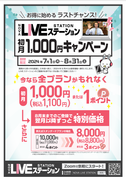 また英会話NOVA田無校では無料の体験レッスンも行っております。