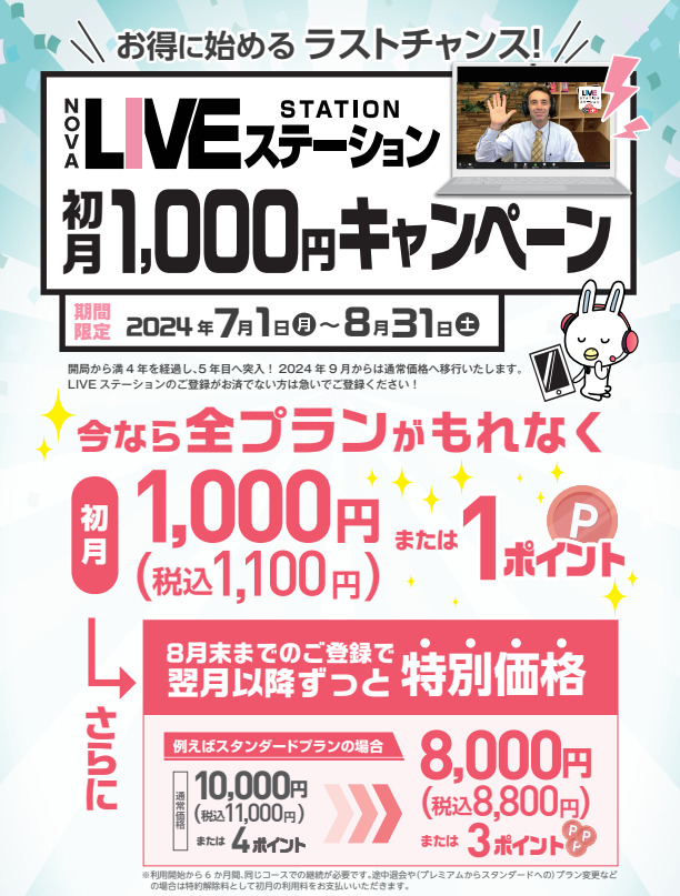 ただいま初月1,100円のキャンペーンを開催しております🐰✨