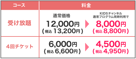 コース料金:受け放題→税込11,000円/4回チケット→税込4,950円