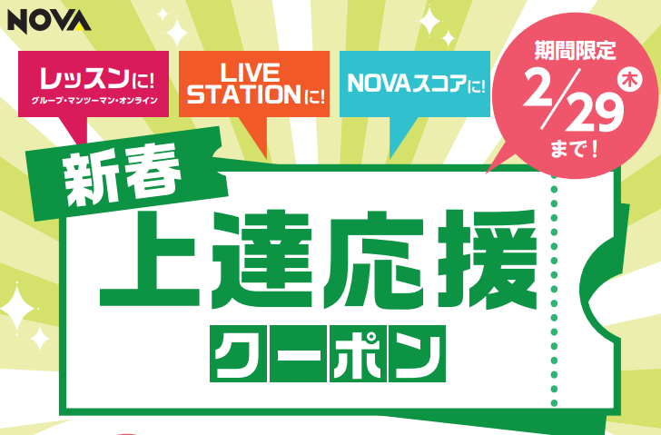 NOVAの無料体験レッスンと3月キャンペーンを実施中!!
