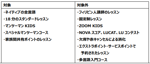 上記実施期間に「お茶の間留学(ネイティブ)」の予約制レッスン消化に応じて、サービスポイントを還元します。