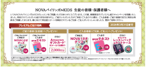 ~NOVAバイリンガルKIDSのお子様・保護者様へ~