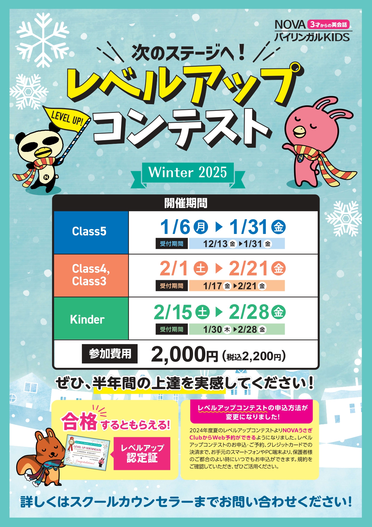 今年も冬のレベルアップコンテストの開催が決定いたしました💁